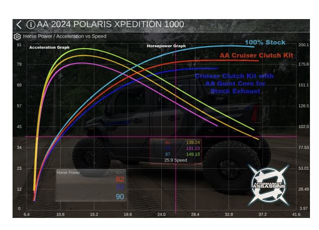 - Our "Cruiser" option is for those looking for less cruising RPM and less noise. The Xpedition has a higher running RPM from the factory. The cruiser option loads the primary clutch weights heavier with our slug magnets. These magnets are like 5 magnets in one large slug, where as our standard magnets are only able to fit 3 in each hole. This allows us to run more weight in the arms without having to purchase a completely different kit. This kit option drops peak RPM down to roughly 7400-7700 RPM instead of 8300 like factory. This does lose a bit of horsepower, but if that's not your concern, this add on option works extremely well. This setup also has even smoother engagement, crawls very well, and still has plenty of acceleration. Think more of a cross between a Ranger and RZR as far as acceleration and feel. The best part is you are not stuck with this option. You can simply revert back to our standard clutch setups whenever wanting more performance. Switching the weights takes 15-30 minutes for most and gives you a chance to clean up/inspect your clutches.