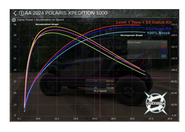 - The biggest problem with the Xpedition clutching is they do not have enough belt grip, they gain RPM too quickly, and yet peak RPM is not achieved quickly. Our kit helps combat this with a stiffer secondary spring over factory for even better belt grip, and the right primary weight/spring to get proper RPM at the right time. Our S3 clutch kit includes primary weights, spring, secondary spring and helix. The helix adds more aggressive shift to the secondary clutch which gives you big acceleration gains and feels more like your throttle is locked to the rear wheels. The Performance helix is the most acceleration gain, while the high load is a little more than stock, but less aggressive for excessively heavy/large tires, crawling, or mud riding.