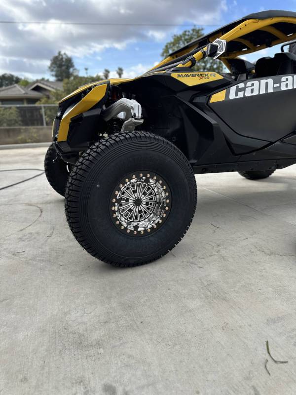 Our "Crusher Pro" wheels are made from Heat Treated 6061-T6 Spun Aluminum and 6061 Billet. They feature a billet CNC machined 6061-T6 center that is 1.25" thick! These are the strongest Maverick R billet wheels on the UTV market. Cast wheels will typically crack or "Shatter" on impact due to cast metals being brittle and porous from the manufacturing process. Our wheels are drastically stronger than a cast wheel but if you do experience a sharp high speed impact they will bend and at least not shatter like a cast wheels. They also typically still hold air if bent letting you get home and not leaving you stranded on the trail! This is the reason racers prefer a non-cast wheel.