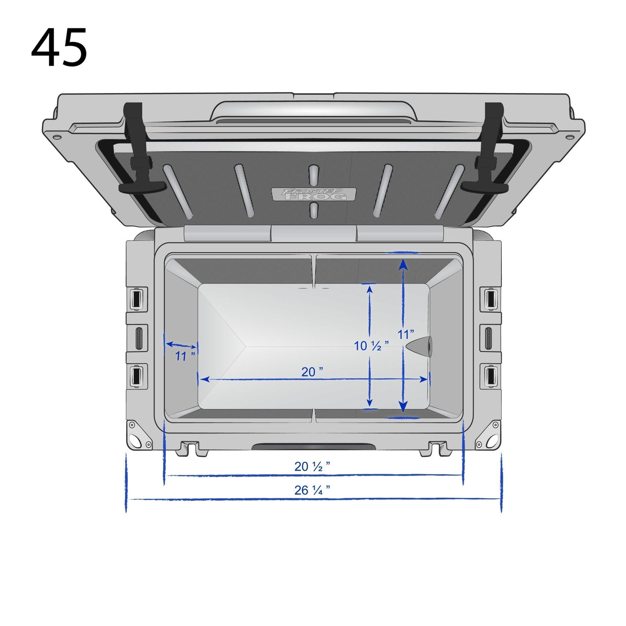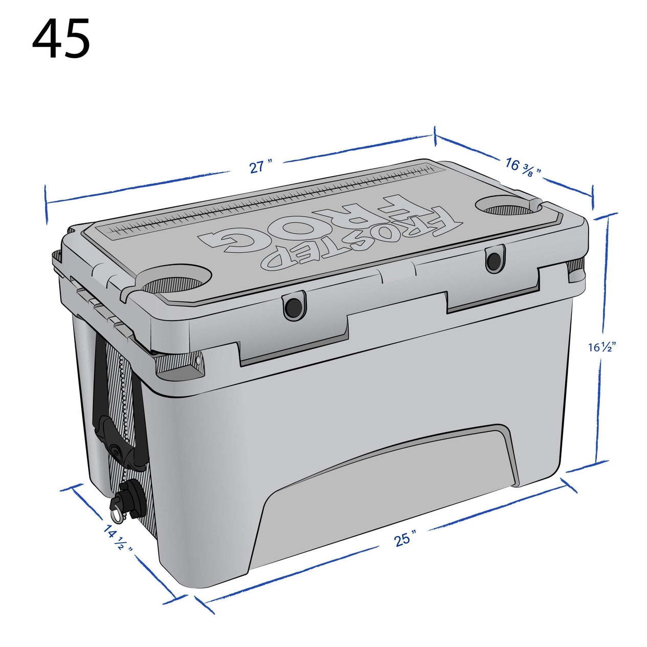 - HEAVY DUTY INSULATION: 45 Quart Ice Chest holds ice for days on end with commercial grade insulation, Freezer Style lid gasket, and Rubber Cold Seal Latches