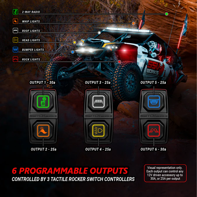 SSV Works Sierra6, 6-Switch, 3-Rocker Electronic Accessory Smart Switcher - Universal