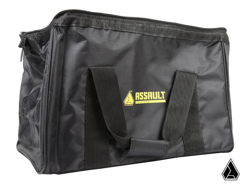 • Assault Industries logo markings on straps and bag