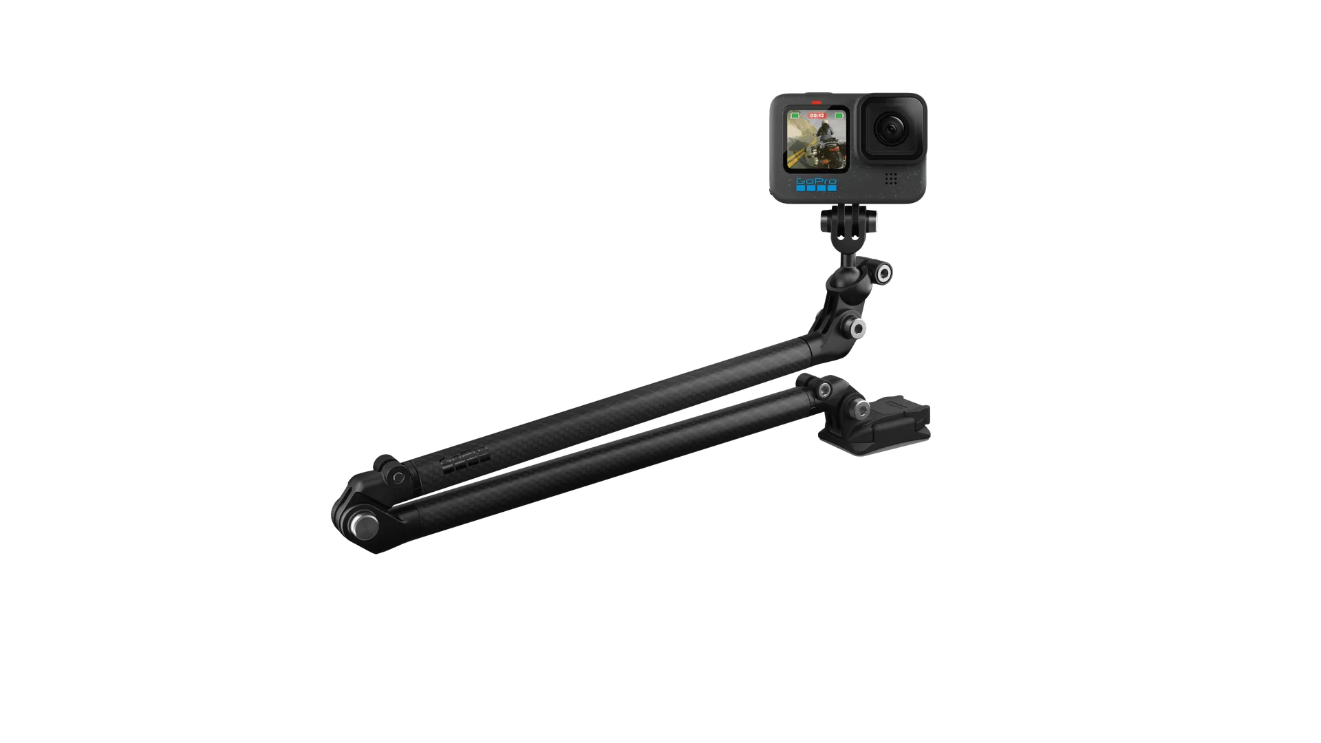 Boom is a fully customizable extension rig kit that can be used with the included adhesive mounts or other compatible mounts to capture amazing new perspectives. Its premium carbon fiber arms can be used together or individually while integrated swivel points and a ball-joint camera mount let you get the exact capture angle you want.