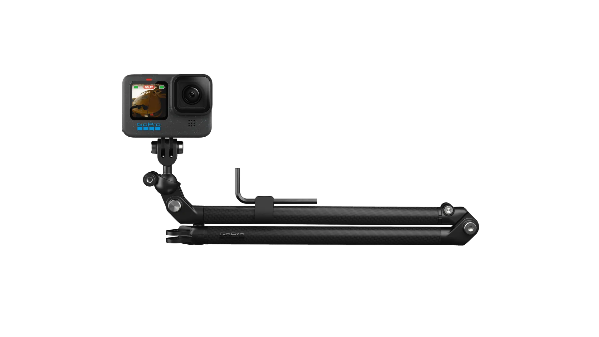 • Includes 2 carbon fiber arms, Ball-Joint Camera Mount, Curved + Flat Adhesive Mounts, mounting buckle, triangulation support slider, 4mm hex key, 2 extra hex screws and hex key storage clip