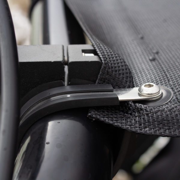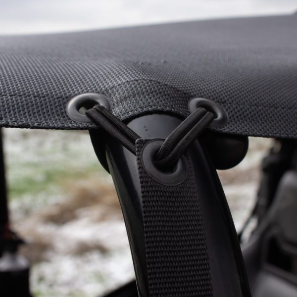 Bungees are included with all our roofs and window panels. Our bungee system quickly aligns the mesh panels to your vehicle. Bungees do wear over time and typically need to be replaced after a few years. Fortunately, we stock bungee replacement sets and are inexpensive to replace.