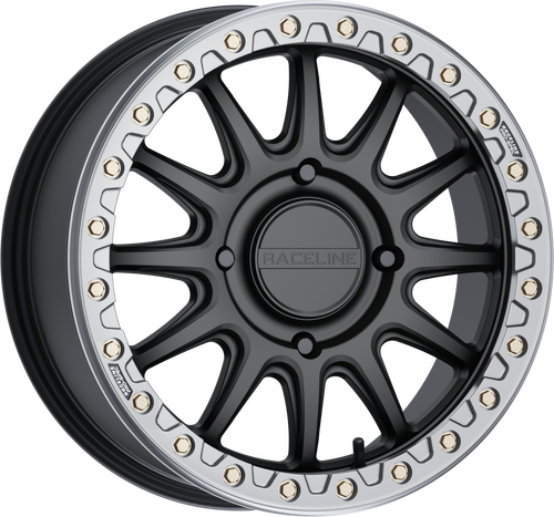 A14BG-77037+25• The new Raceline A14 Alpha beadlock wheel. Its aggressive 12 scalloped spoke design with its contrasting beadlock ring gives it a true rally inspired race look