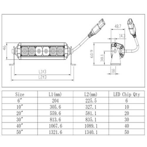 Our all new compact, high output light chase bar offers superior output using high efficiency Cree 10w emitters and in a much smaller case size making this one of the brightest chase bars on the market and provides additional mounting options and reduced weight.  Military spec anti fog breathers keep you moisture free and our 25yr you break it we replace it warranty covers any issue, even accidental damage.  Our 5 wire waterproof plug allows quick removal if needed.