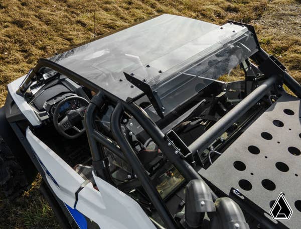 Polycarbonate is the best transparent roof material available. At 250 times stronger than glass and 25 times stronger than acrylic, your enemies won’t be able to crack it. It installs to you RZR’s cage with robust clamps and seals so that it won’t come loose. The seals prevent leaks and debris from getting inside too. Polycarbonate will really give you the edge in the heat of battle.