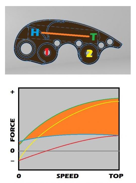 The HEEL - The heel weight force is applied instantly once clutch weight overcomes the primary spring preload. It will gradually have less effect as you get closer to top speed.