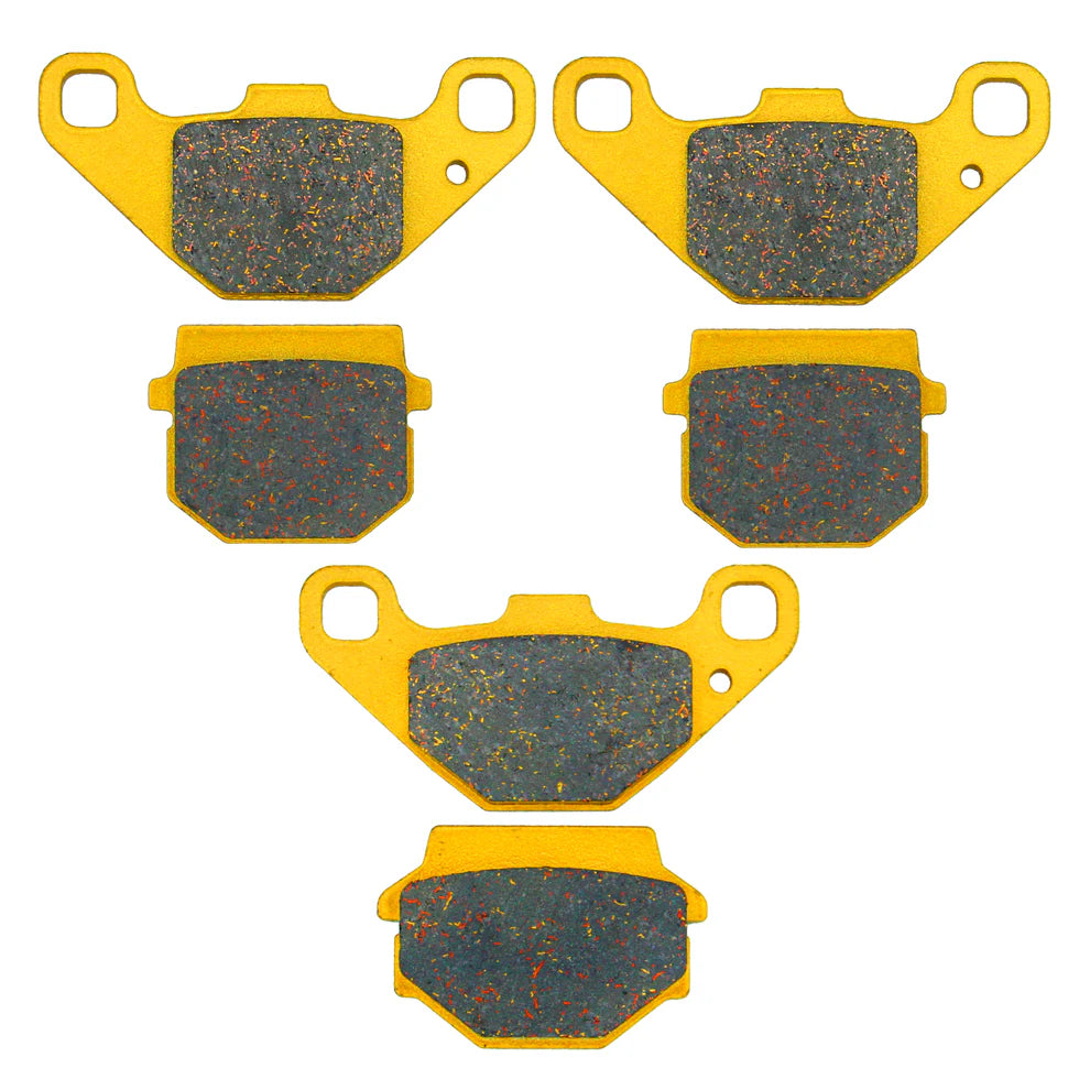 - Full set included (Pads for 2 front calipers & 1 rear caliper). Direct fit: No modification necessary