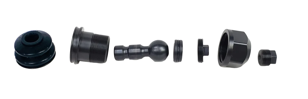 - Adjustment nut: This is the item you will adjust as the unit wears to maintain a tight ball joint. The adjustment nut threads into the main body and is used to maintain pressure on the wear plate so that the joint stays tight.