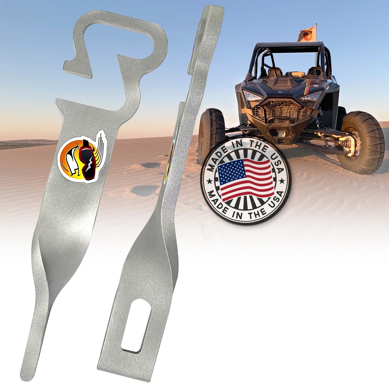 Keep Smiling Aluminum Easy-Cool UTV Door Latches are light-weight, easy to carry and installed for both two (2) and four (4) seat models. Product is made with machined billet aluminum for consistent tolerances and fit.