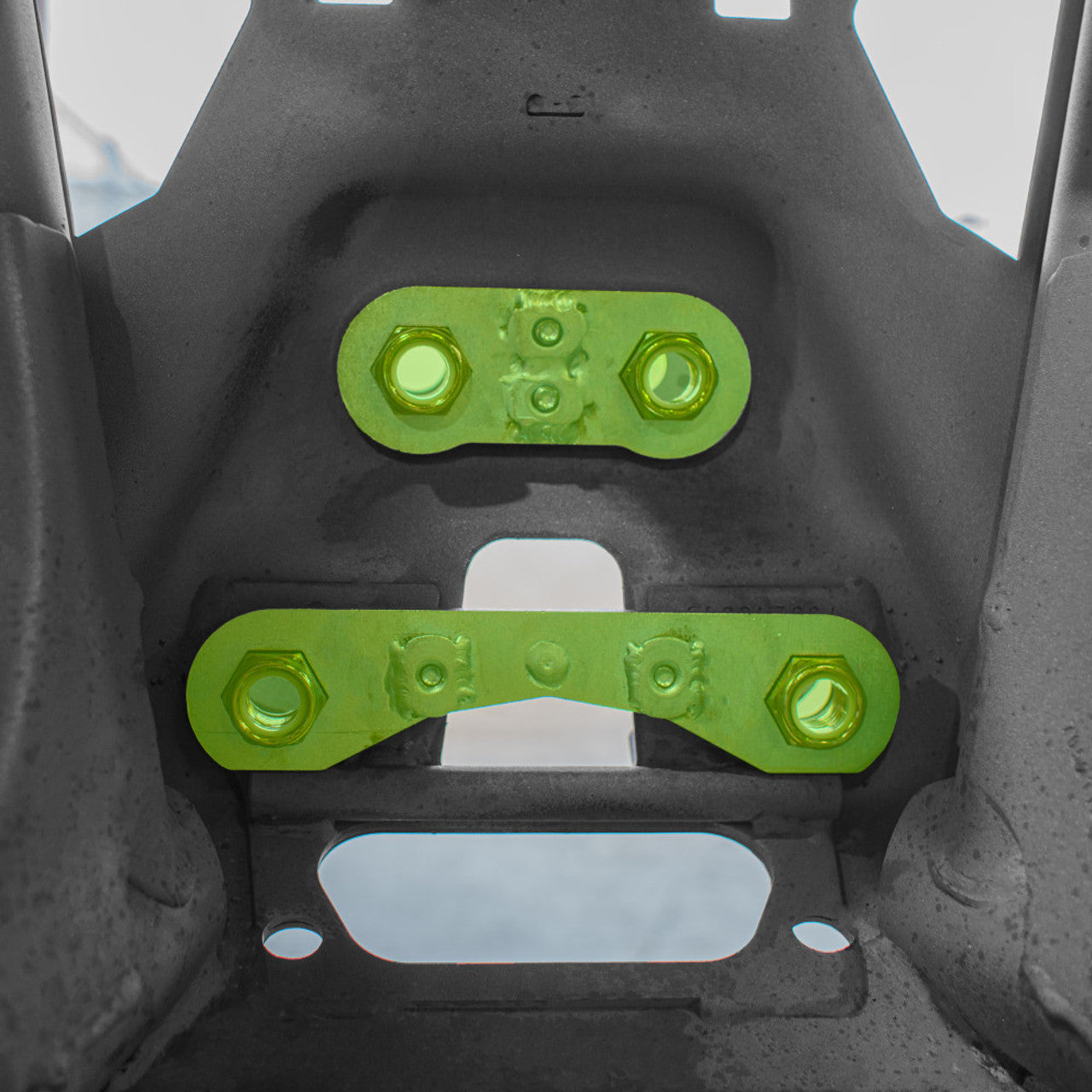 S3272Replace the factory radius rod mounting hardware with our S3 Power Sports Radius Nut Retainers! With this kit you will eliminate the concern of stock hardware breaking loose and spinning when removing or servicing your radius rods. The integrated nut retainers eliminate spin by "locking" the nuts in place, keeping them tight, and making it impossible for them to loosen. The design of the S3 Power Sports Radius Nut Retainer also allows you to easily remove and replace the nuts if needed in the future. This bolt-on kit installs easily and is a valuable addition to your 2024+ Can-Am Maverick R, ensuring you spend more time on the trails.