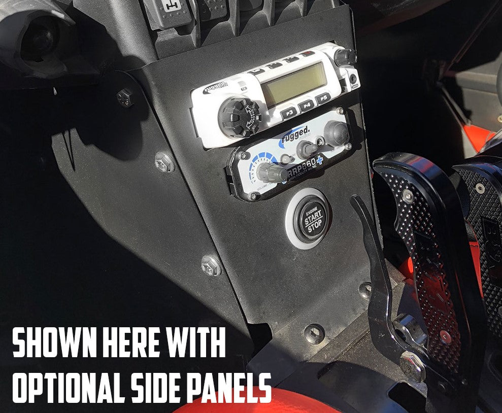 These side panels are designed to be used with the Rugged Radios Intercom & Radio mount for the Can-Am X3. These side panels make for a clean and factory-like appearance.