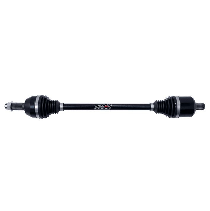 Heavy Duty Axle by Demon Powersports®. Dual Heat Treated chromoly steel holds up better through extreme torque, wide articulation angles and an increase in plunge prevents the axle from binding, thermoplastic Polyester Elastomer CV boots are highly resistant to tearing, this method provides best overall operating performance