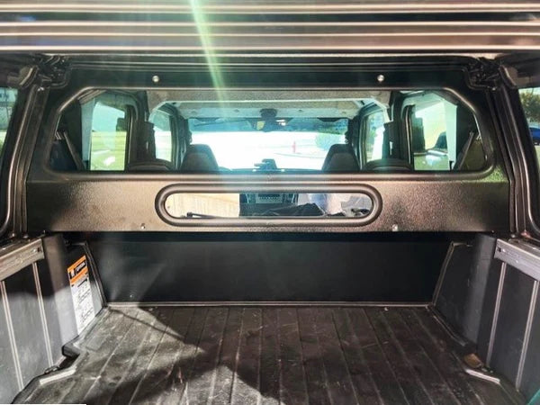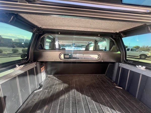 Its not just a partition, its also a window, complete with laminated safety glass and a powder coated aluminum frame that seals off all the way from the roof to the bed