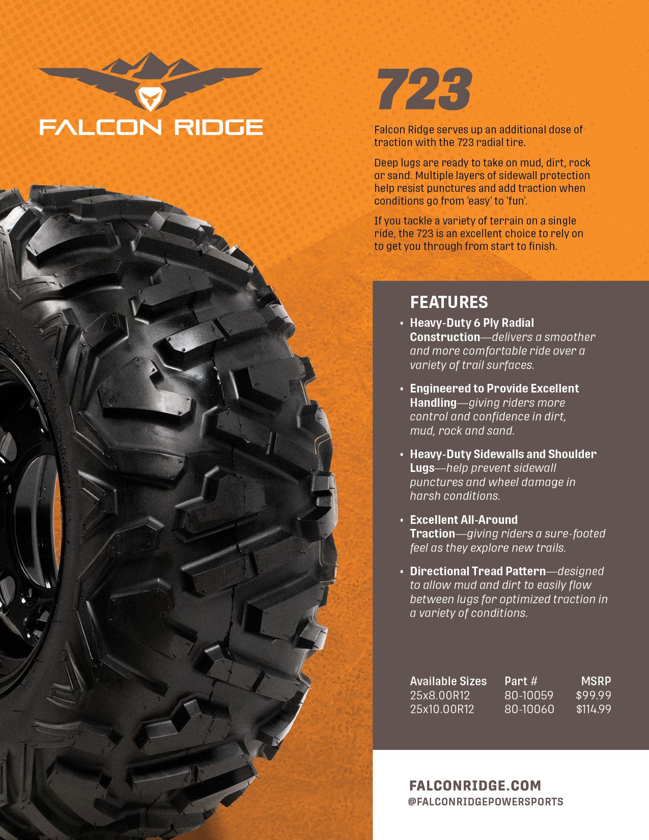 If there were ever an aftermarket tire with versatile traction, it's this unit right here. Falcon Ridge wanted to ensure drivers of all types would have the grip they needed for the ride they wanted. Thus, the birth of the 723 Radial 6-Ply Tires.