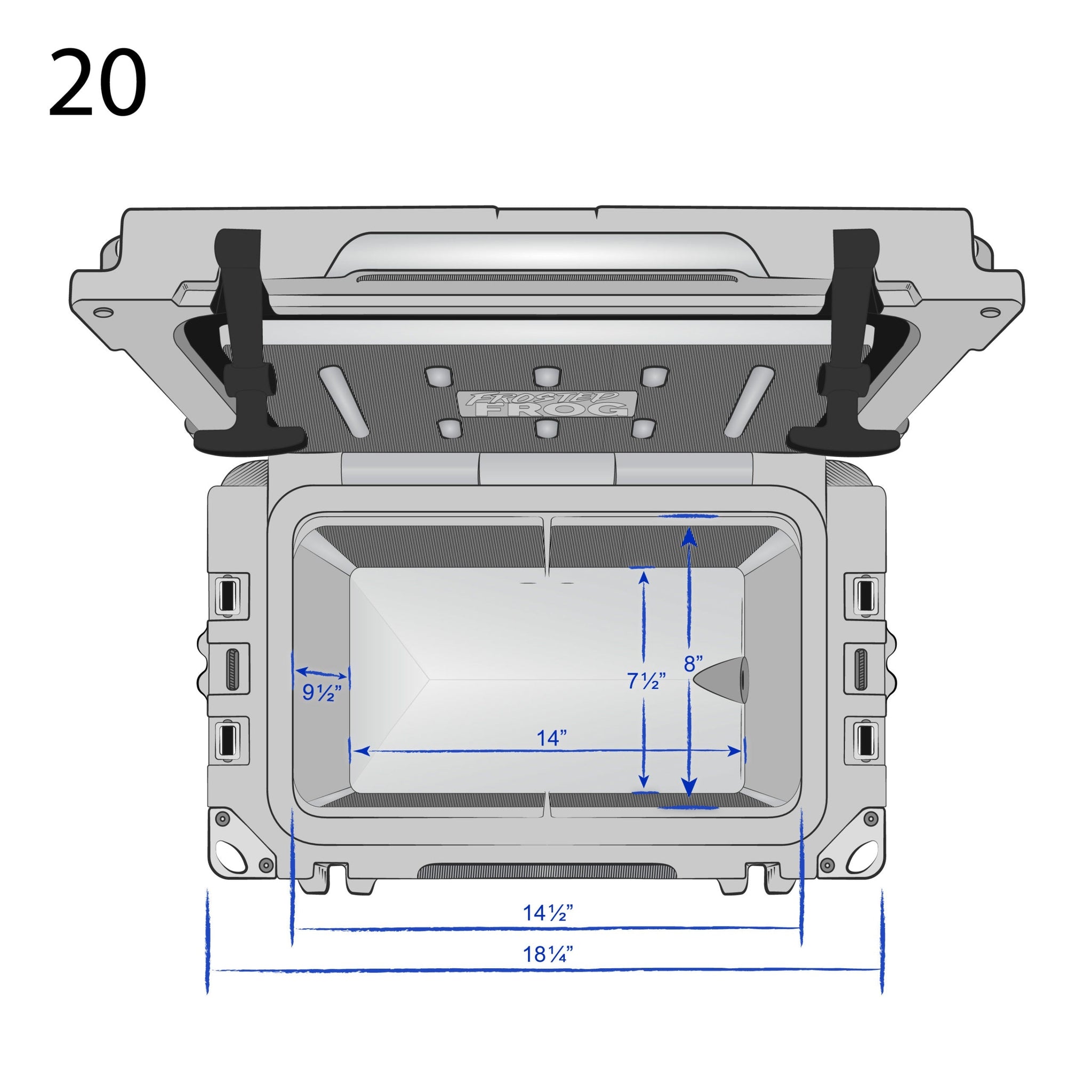 Frosted Frog 20qt camo cooler is high quality rotomolded with extra-thick walls for superior insulation. Manufactured with high density multi compound PU Foam walls and an environmentally friendly pressure-injected insulation system. Heavy duty rubber latches and non-slip, non-marking bottoms on all four corners. Commercial grade door lid seal gasket. All materials used are non-toxic and FDA approved.