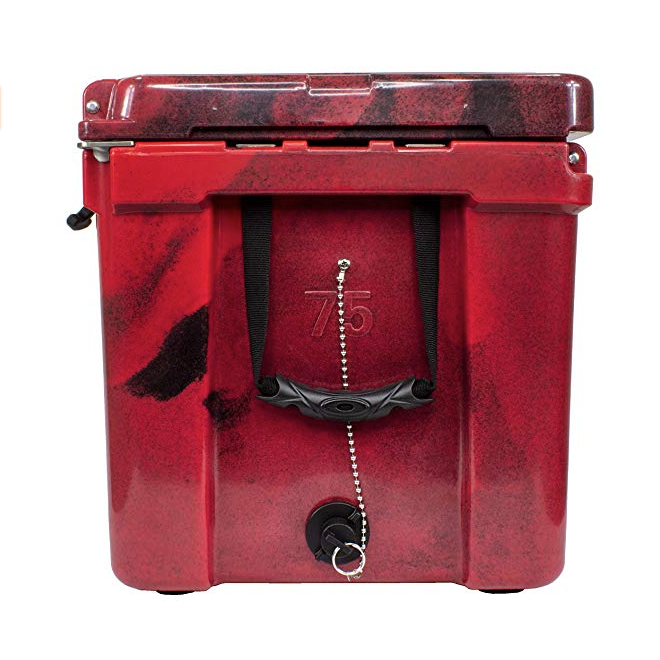 - ADVANTAGES: The benefits of our 75 QT rotomolded cooler include military grade nylon rope handles, super grip non-slip rubber feet, molded tie down slots with lock plates, recessed no leak drain plug, pressure release valve, and 2 built-in bottle openers!_