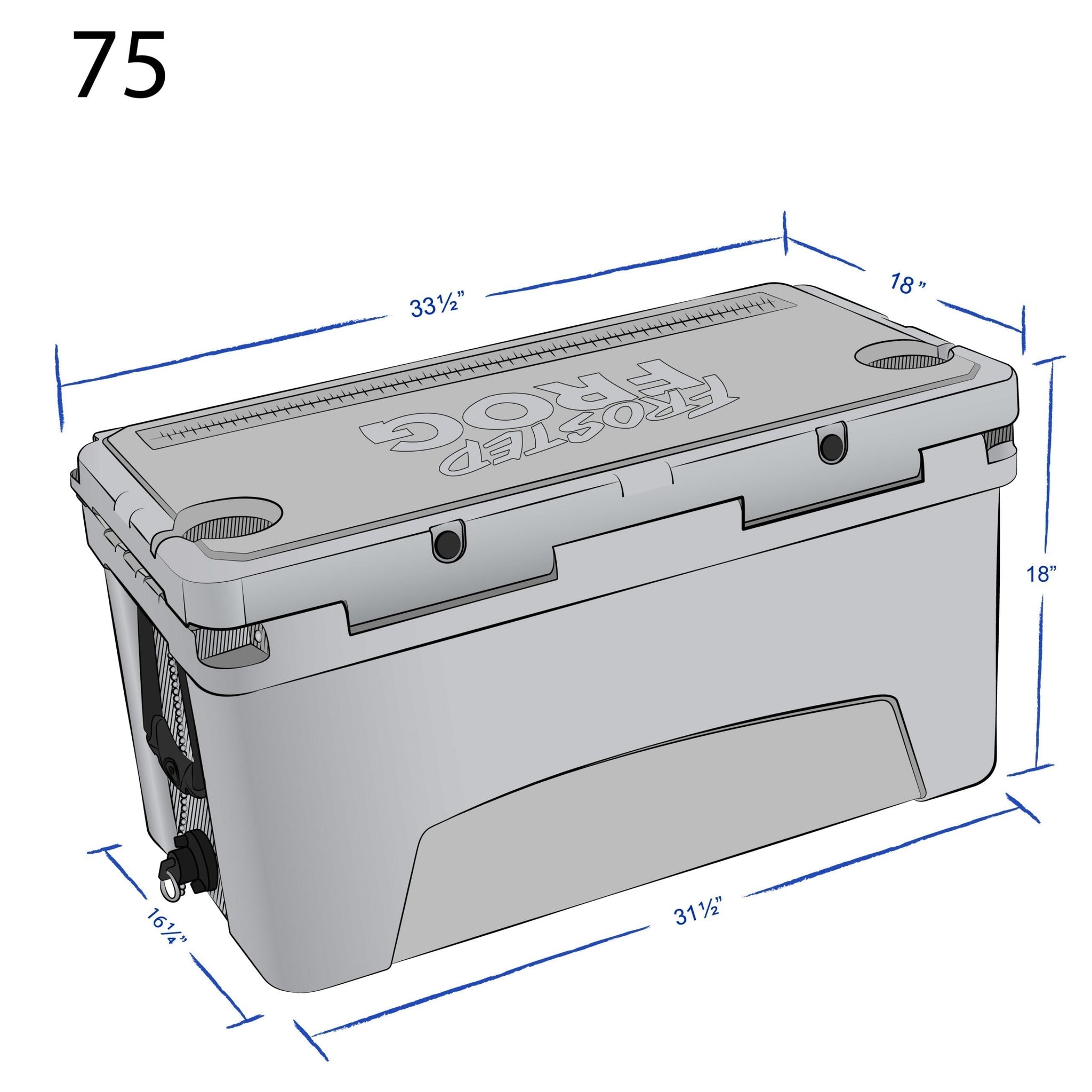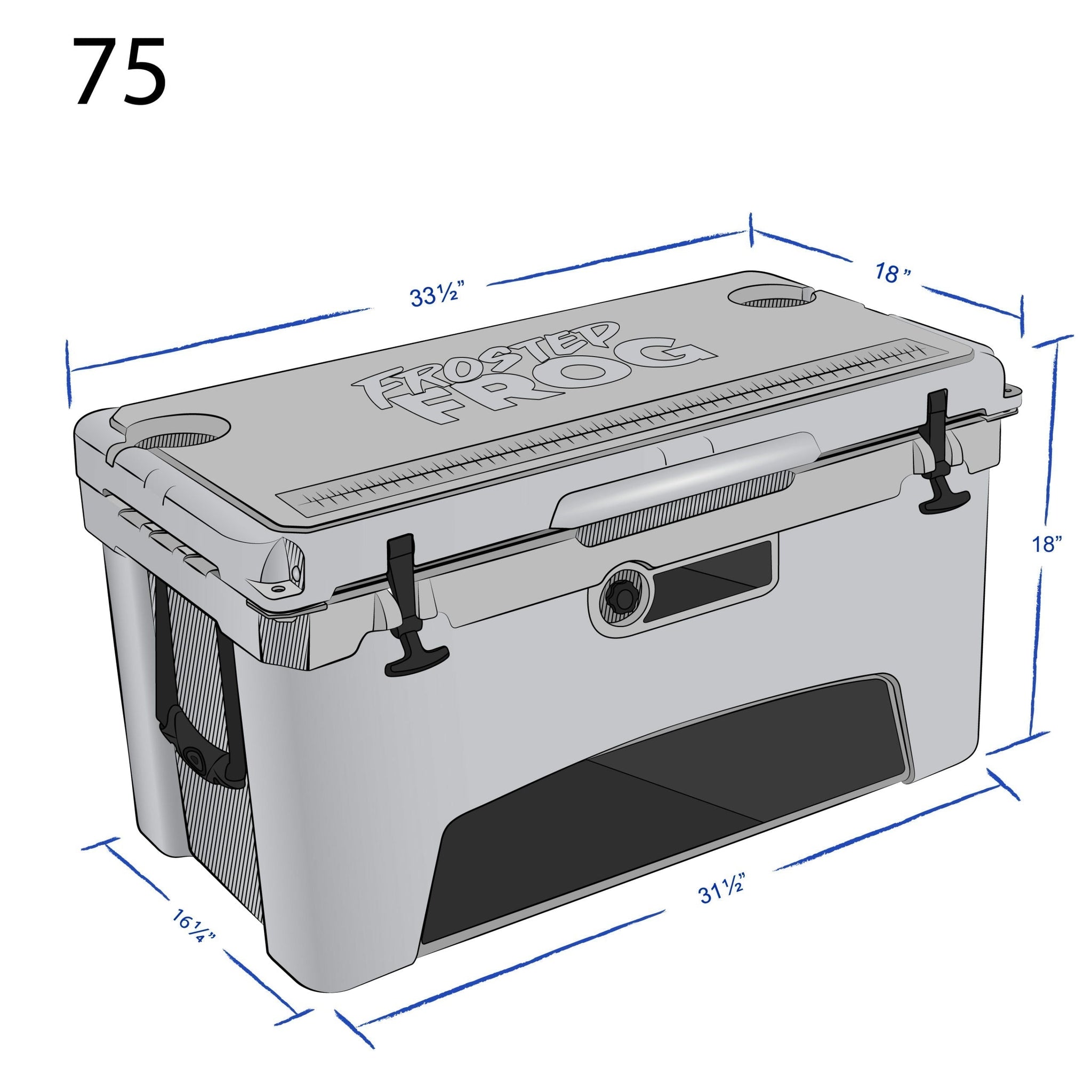The Frosted Frog 75 QT rotomolded cooler features extra-thick walls for superior insulation. It’s manufactured with high-density multi-compound PU Foam walls and an environmentally friendly pressure-injected insulation system. The Frosted Frog insulated ice chest also includes heavy-duty rubber latches and non-slip, non-marking bottoms on all four corners. The commercial grade door lid seal gasket locks in cold air for extended insulation. All materials used are non-toxic and FDA approved.