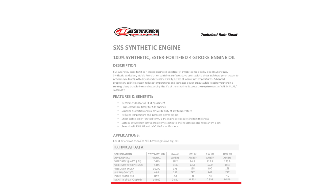 Maxima - SXS Synthetic 4t Engine Oil 5w-50