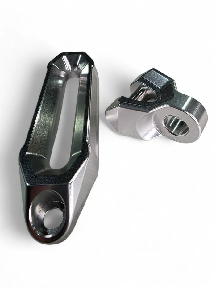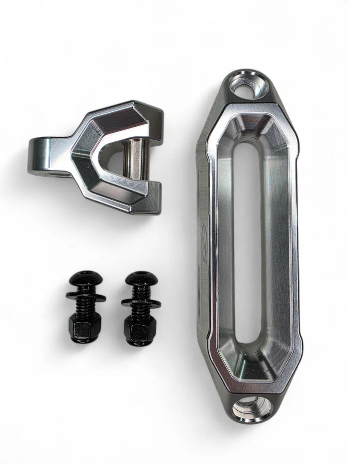The Elektric Offroad Designs Winch Fairlead and Hook fits all standard UTV winch bumpers. The heavy duty billet aluminum fairlead is designed for synthetic rope winches and includes a tow hook to handle any recovery situation you may encounter. The combo hook & fairlead features a simple bolt-on installation with supplied hardware.