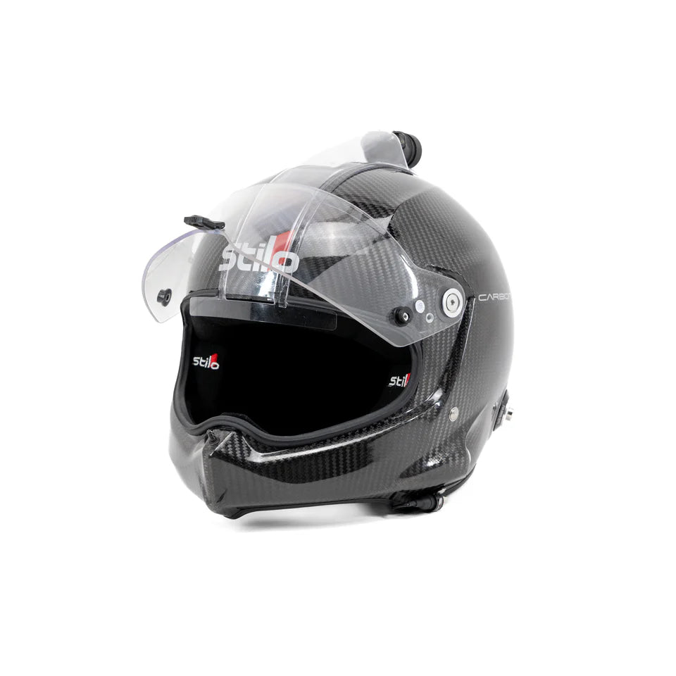- Enhanced Vision The helmet boasts a wide visor aperture, 34% larger than the Stilo ST5, providing an expansive field of view. Easily see the harness lap belt! The clear, full-length visor features a center locking pin and peripheral seal to guard against dust and rain.
