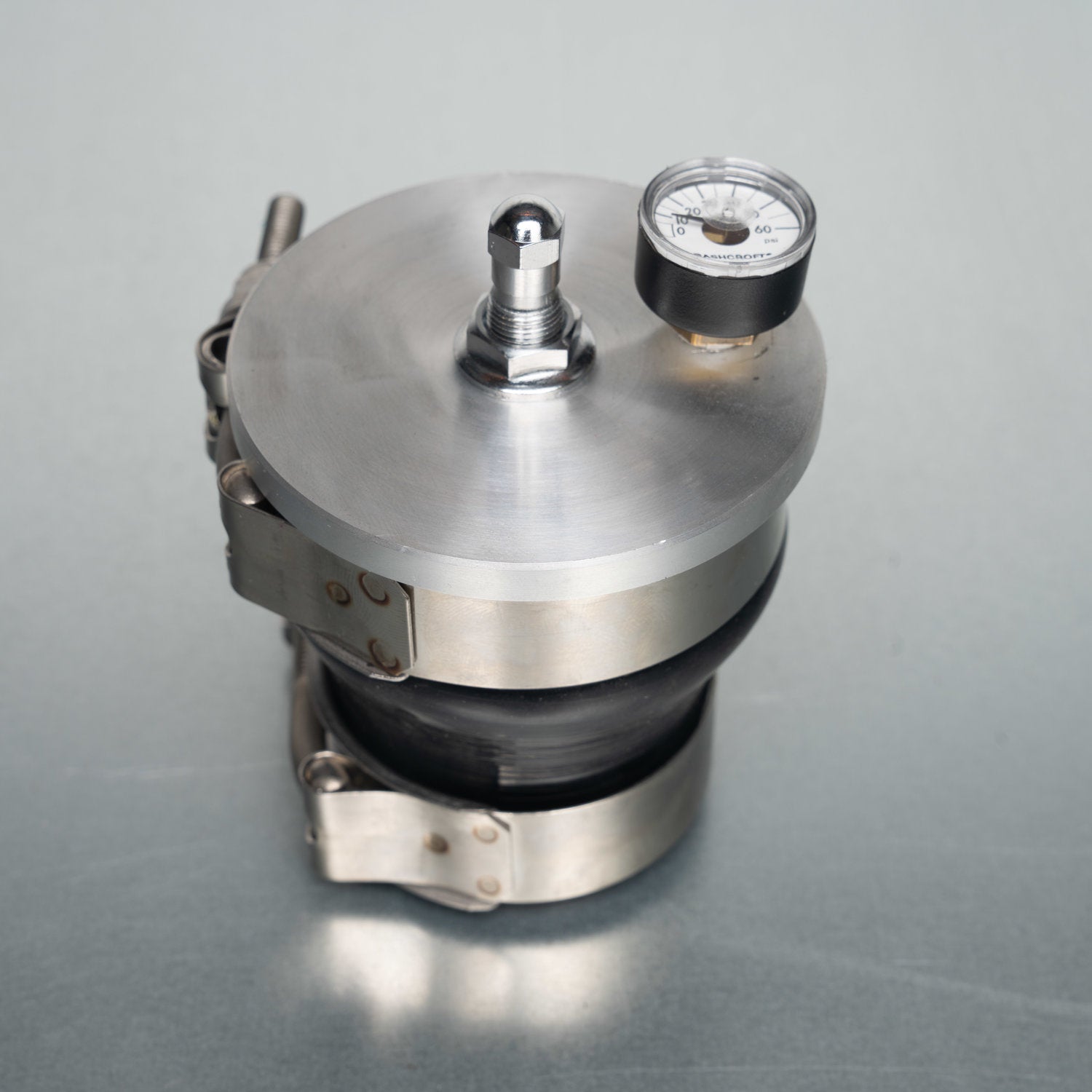 KWI boost leak tester for CanAm X3 and Polaris RZR Turbo. Test your entire turbo, intercooler intake plenum and boost tubes for leaks up to 60psi easily by disconnecting only the air filter inlet into your turbo. Troubleshoot for leaks causing high intake charge temps, low horsepower issues and poor performance all in one step. Boost leak testing is the first step after any turbo or intake maintenance and a must have for anybody serious about performance.