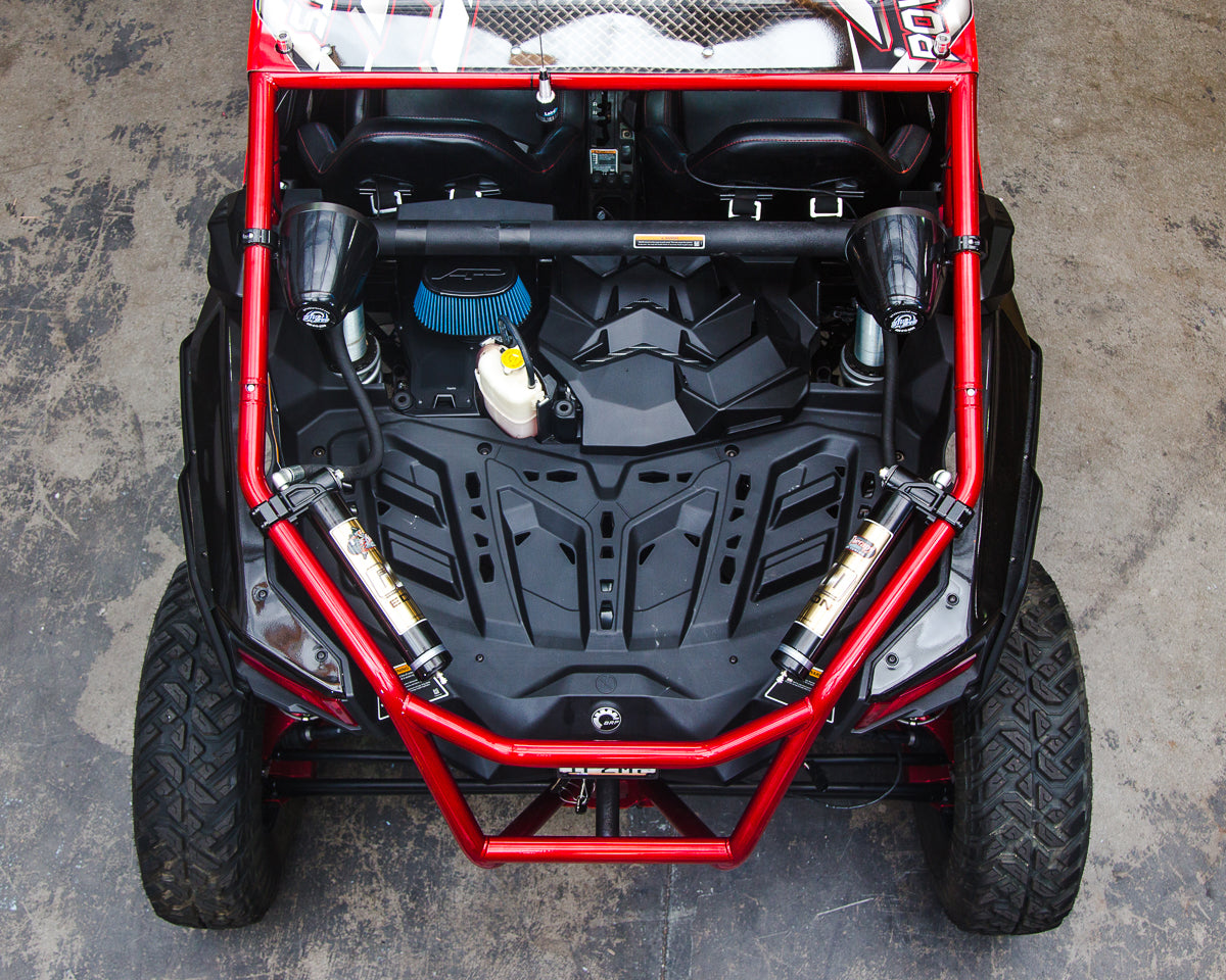 A cold air intake kit on the Can-Am Maverick X3 Turbo can greatly improve the performance of your vehicle. It is a pretty common practice that a vehicles first mods are intake, exhaust, and ECU tune. With Can-Am X3 owners doing ECU tunes almost immediately as their first modification, the increased boost levels means the turbo needs more air. A cold air intake is designed to flow more air than the factory intake. This different designed intake from Agency Power features a high flow air filter that provides your turbocharger with more CFM when it needs it most. The factory air box is designed to accommodate the stock power and the everyday driver Can-Am wants you to be. Chances that is you is slim! Unlike the stock air box or those other flow tubes that just cut the stock air box open, a complete cold air intake is the proper way to gain power without restriction. An intake needs to breathe while filtering out particulates. By removing the Donaldson air box, you are gaining better throttle response, faster turbo spool, and dyno proven power even without an ECU flash.