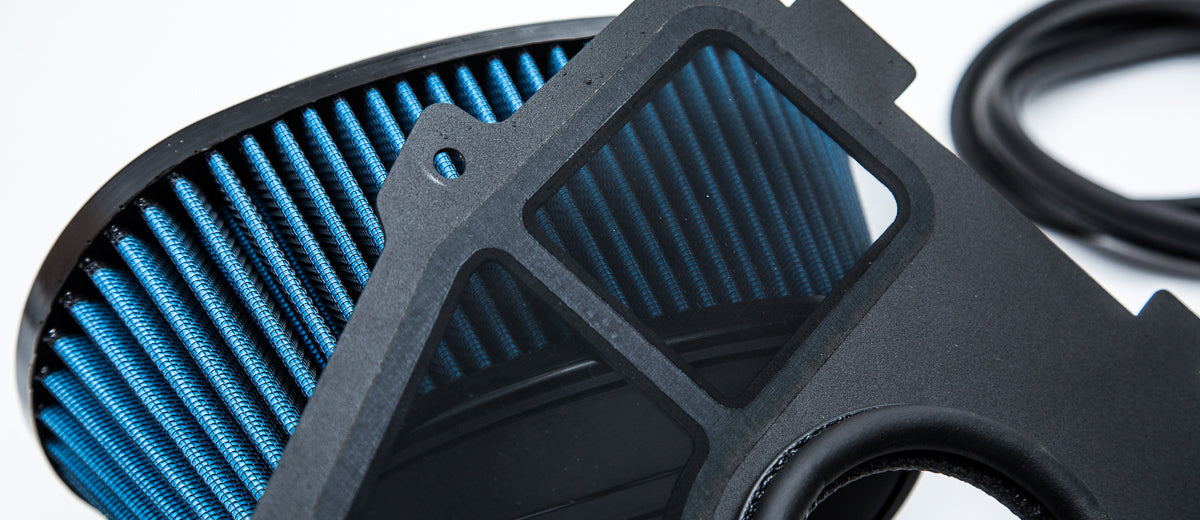 Replace the filter on your Agency Power intake with our new replacement air filters. More important to the performance is the air filtration. The factory paper mesh filter has to be thrown away and replaced when the time is due. It also easily clogs up with dust and dirt. Agency Power's replacement air filter is designed to replace this factory air filter while still using the stock air box. The custom high flow Agency Power filter features a blue mesh design with AP logo end cap. This mesh is made up of synthetic nano-fibers. The dry filter does not need to be oiled as its media have sub-micron diameters and small inter-fiber spaces which result in more contaminants being captured compared to the stock paper filter. This filter is reusable allowing you to easily clean it between rides.