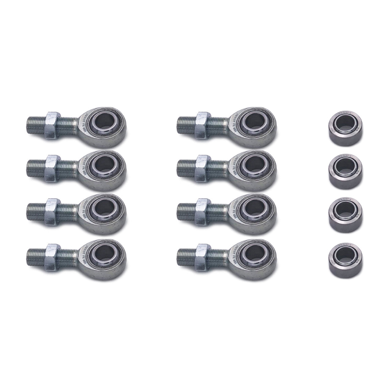 The full kit includes new heims, uniballs, misalingment spacers, o rings, snap rings and jam nuts.