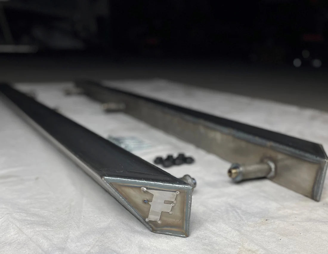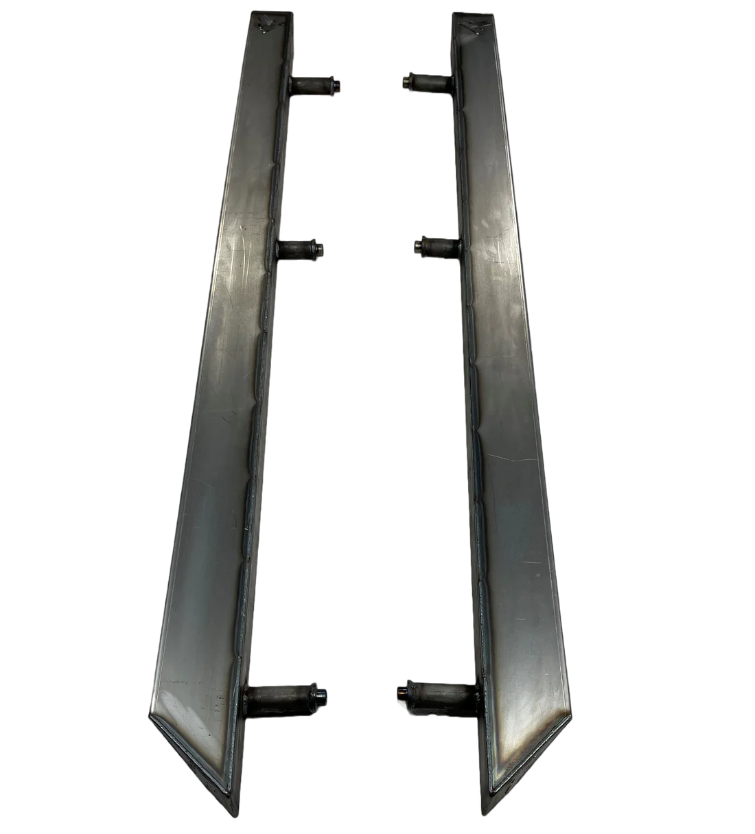 Getting in and out of the Polaris RZR Pro line is difficult and awkward, even more so once you add taller tires. Our solution? Fully fabricated steps that span the entire cab of the RZR that also double as rock sliders. Using machined inserts that key into the frame and the largest hardware available, paired with UHMW skids bolted to the bottom, these step sliders are ready to take your Pro R, Turbo R or Pro XP 4 seater to the next level. Utilizing .120" boxed steel, our fabricated sliders are capable of taking on even the most demanding terrain, all while giving you a solid standing point to make getting in and out easier, and access to any roof mounted accessories a breeze. Available in our signature texture black powdercoat or raw for your custom color.