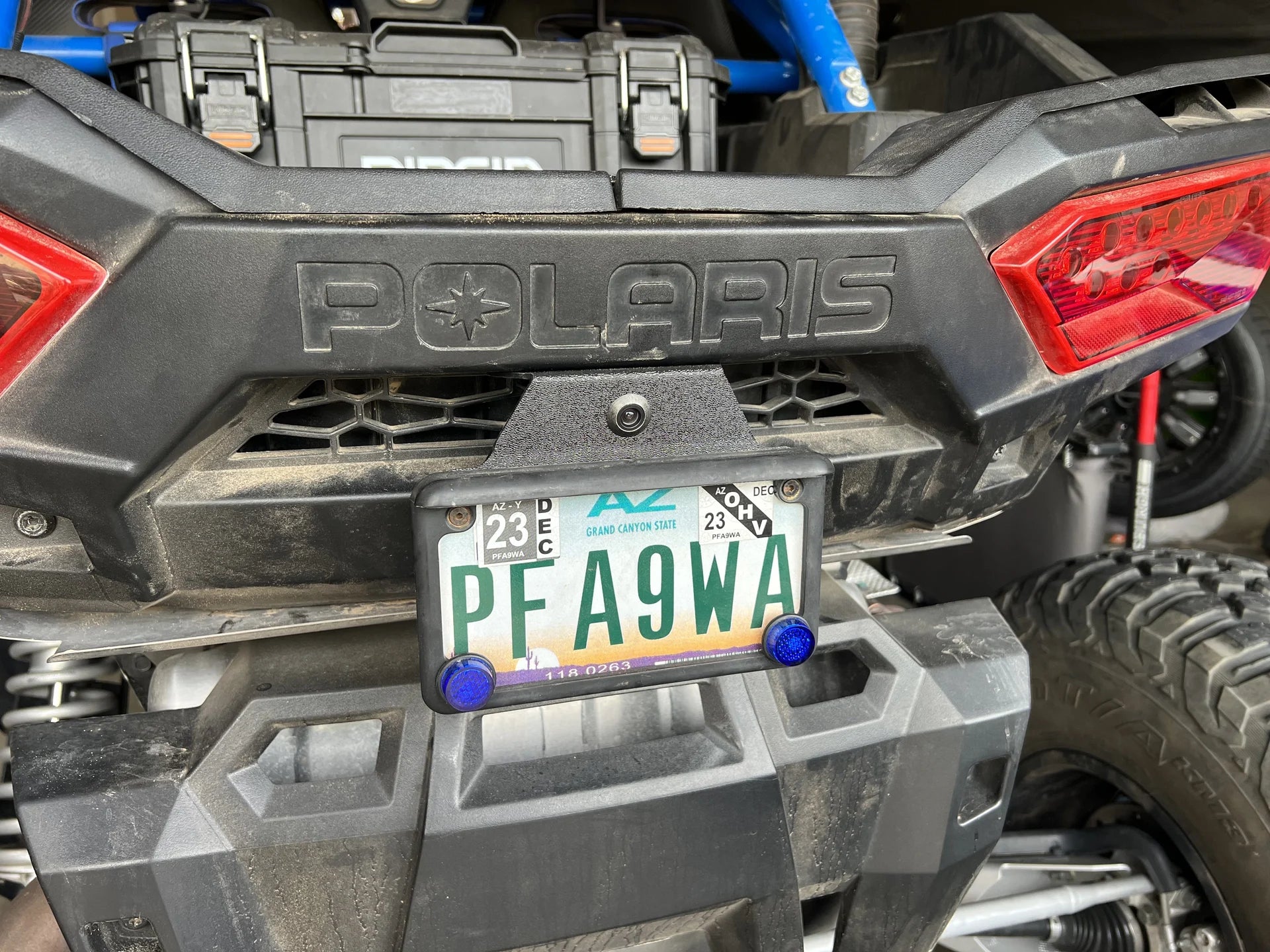 Adding a back-up camera to your RZR has never been easier with our handy mount. Simply bolt it right behind the factory license plate mount and never wonder what dangers are behind. We all no that seeing from behind is a chore in an RZR, especially with the cooler, tire rack, etc. This mount gives you the perfect angle for superior rear vision when backing up.