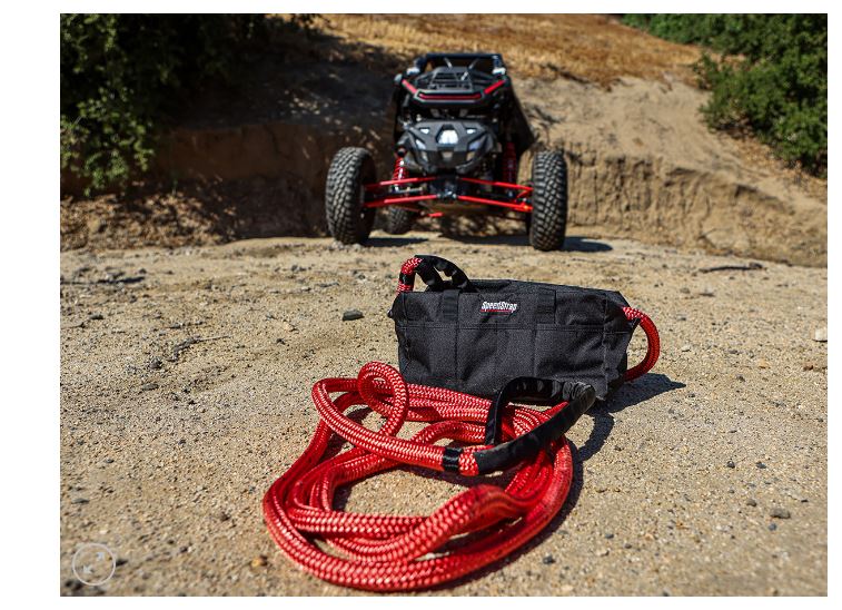 35830The Lil Mama Kinetic Tow Rope is the ultimate way to recover your UTV, SXS, or Lightweight Buggy. Unlike traditional tope ropes where you need to get the rope tight before you pull, a kinetic rope’s design allows you to get a running start with the recovery vehicle, and use the extra kinetic energy to pull it free. SpeedStrap’s design uses double braided nylon webbing with an inner core and outer cover, that creates two stages of tension that puts less shock load on the vehicles, while still pulling them free. While pulling, the rope stretches and builds up kinetic energy. Once the rope reaches it maximum stretch, it snatches back and releases that energy to pull the stuck vehicle out of the mud, sand, or snow. Want to learn more about how Kinetic Ropes work? – Click Here