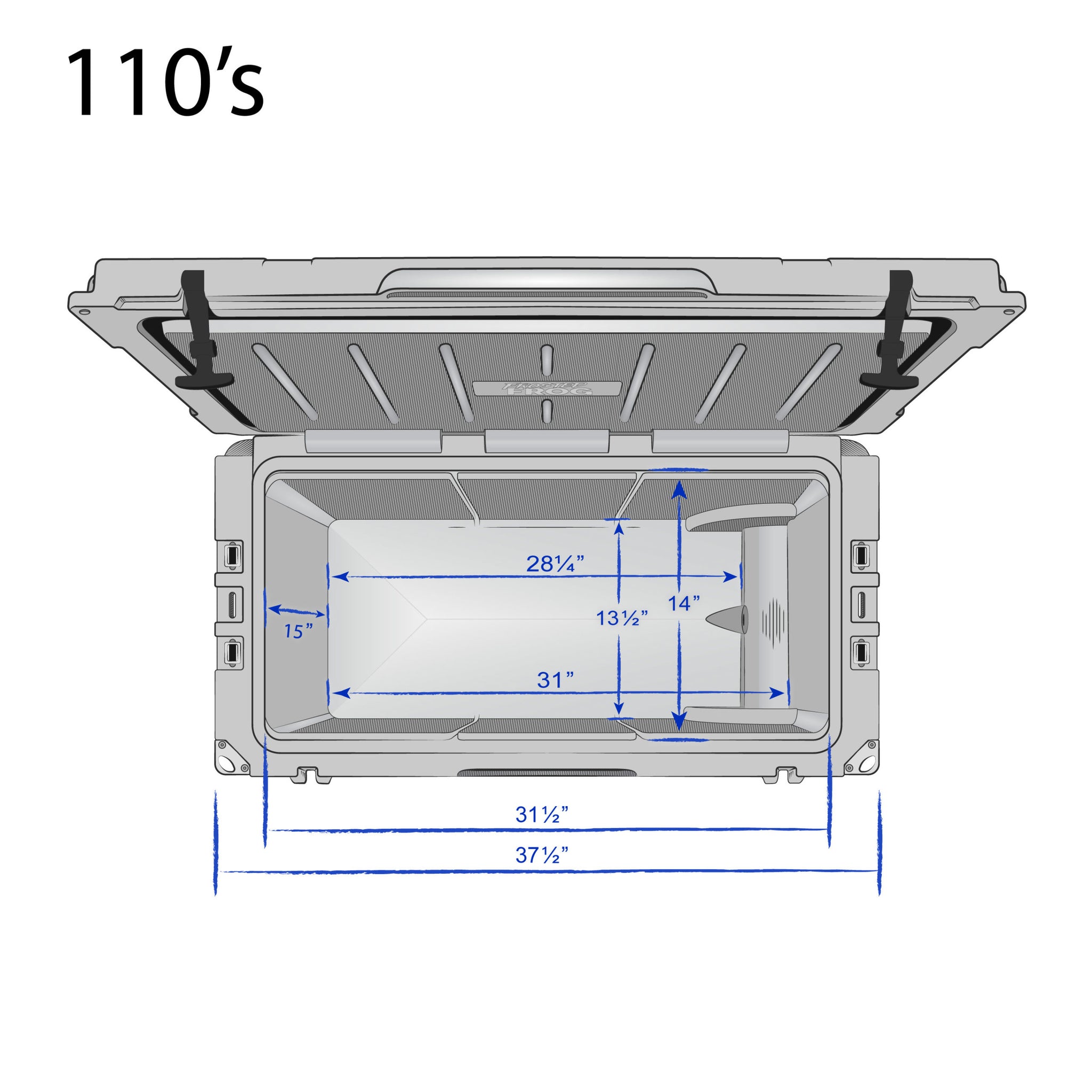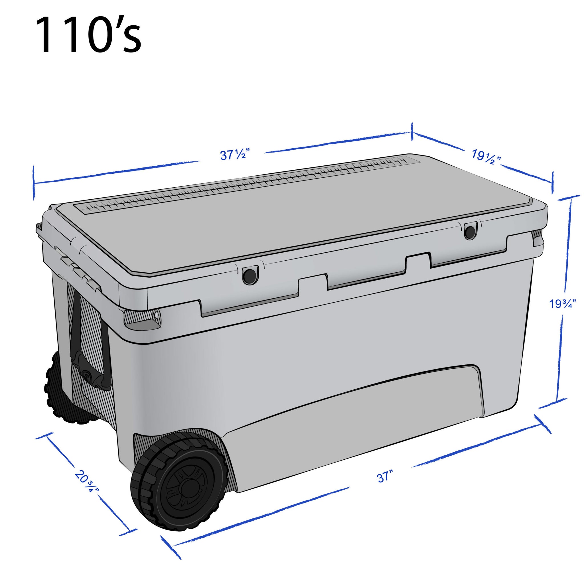 - HEAVY DUTY INSULATION: 110 Quart Ice Chest holds ice for days on end with commercial grade insulation, Freezer Style lid gasket, and Rubber Cold Seal Latches