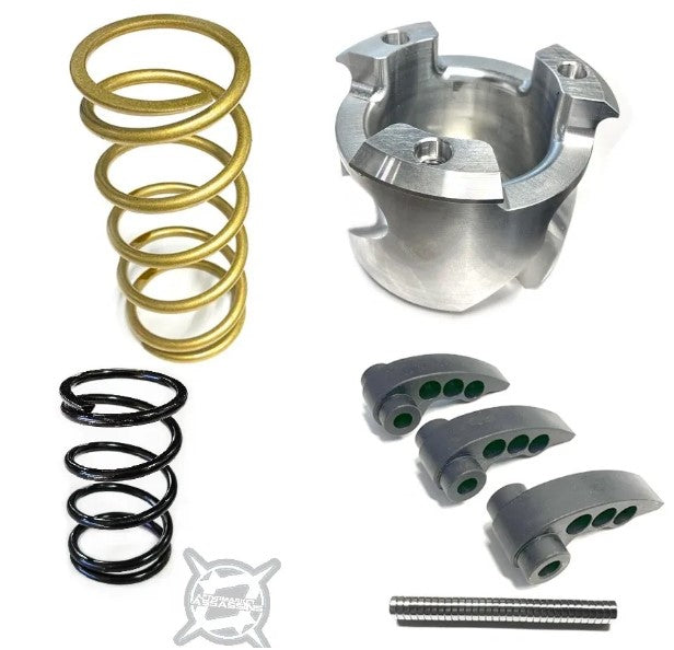 - Kits include: AA Recoil magnetic adjustable clutch weights, primary spring, secondary spring, and custom cut helix.