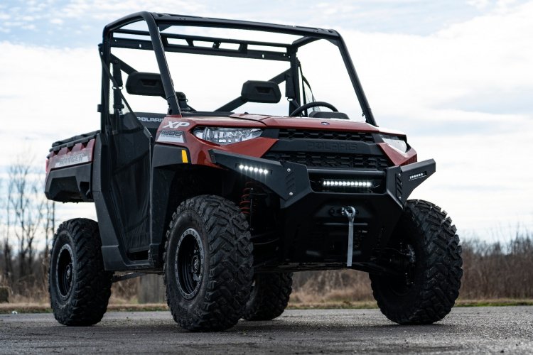 93044Enhance the look and capabilities of your Polaris Ranger’s front bumper with Rough Country’s Front Bumper Panels with 6-Inch LED Lights. This innovative add-on installs directly on to the factory bumper giving your UTV a more mancing appearance and additional front-end illumination. These durable 11-gauge steel panels offer a sleek, modern look that extends to the edge of the front end assembly.