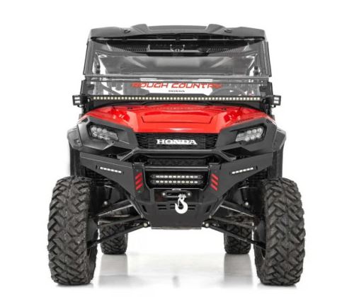 COMMAND THE DARK with Rough Country’s 50-inch LED Lower Windshield Kit for Honda Pioneer models. This handy solution includes everything you need to upgrade your Pioneer UTV with a 50-inch LED light bar in the perfect, forward-facing position for off-road illumination.