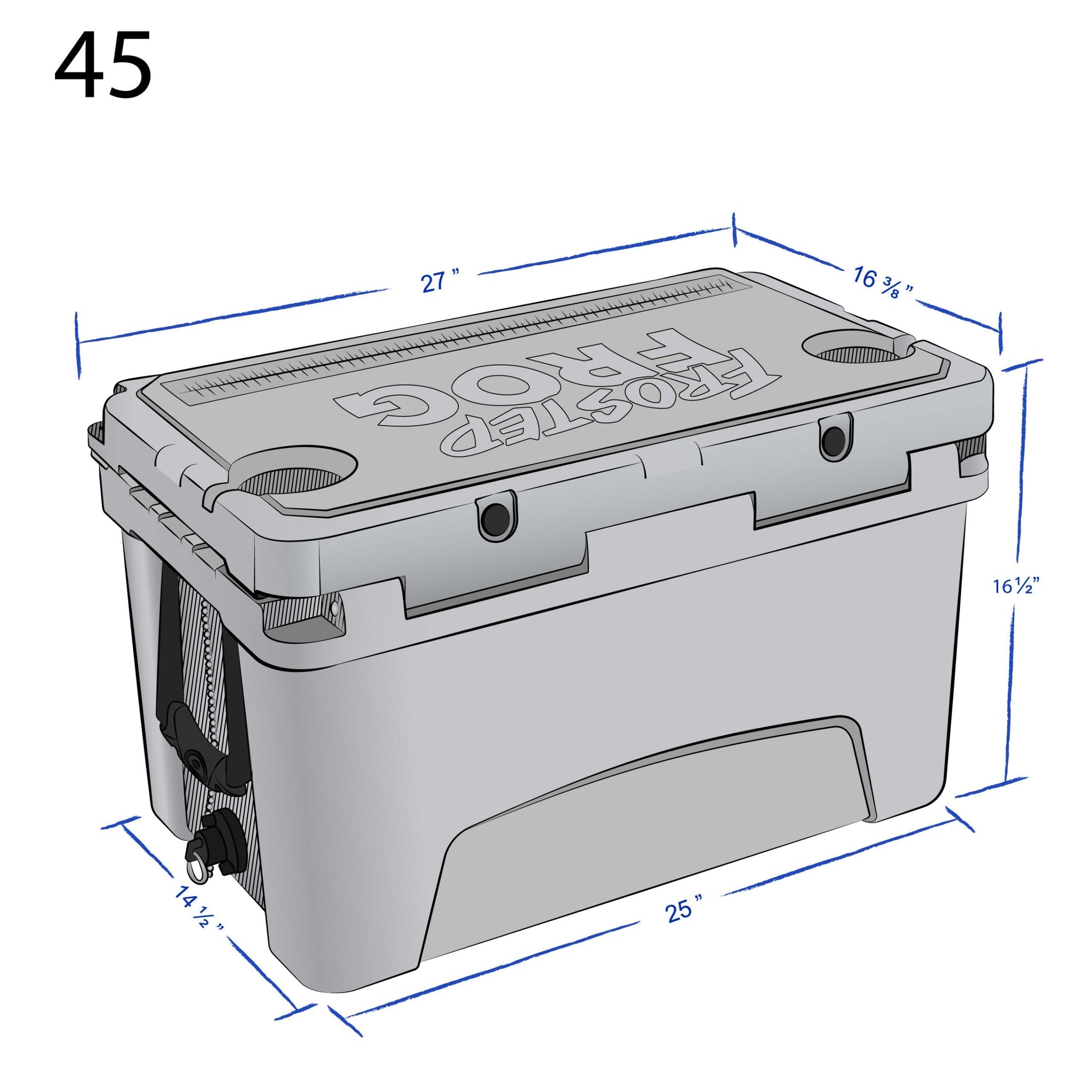 • HEAVY DUTY INSULATION: 45 Quart Ice Chest holds ice for days on end with commercial grade insulation, Freezer Style lid gasket, and Rubber Cold Seal Latches