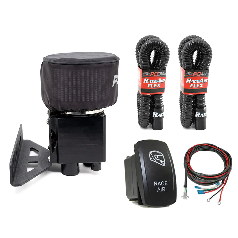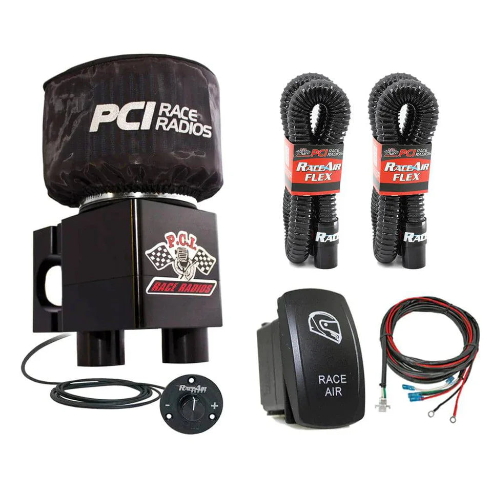 3661Keep your visor from fogging up and the dust out of your helmet! Perfect fit for your SxS, short course ripper, or full blown spec truck. Complete with wiring harness, rocker switch and hoses this is your one-stop shop for clean, fresh air in your helmet! The RaceAir billet housing includes specific roll bar sizes available to fit your vehicle. You also have the option of the remote speed control for your dash to keep the power right at your fingertips.