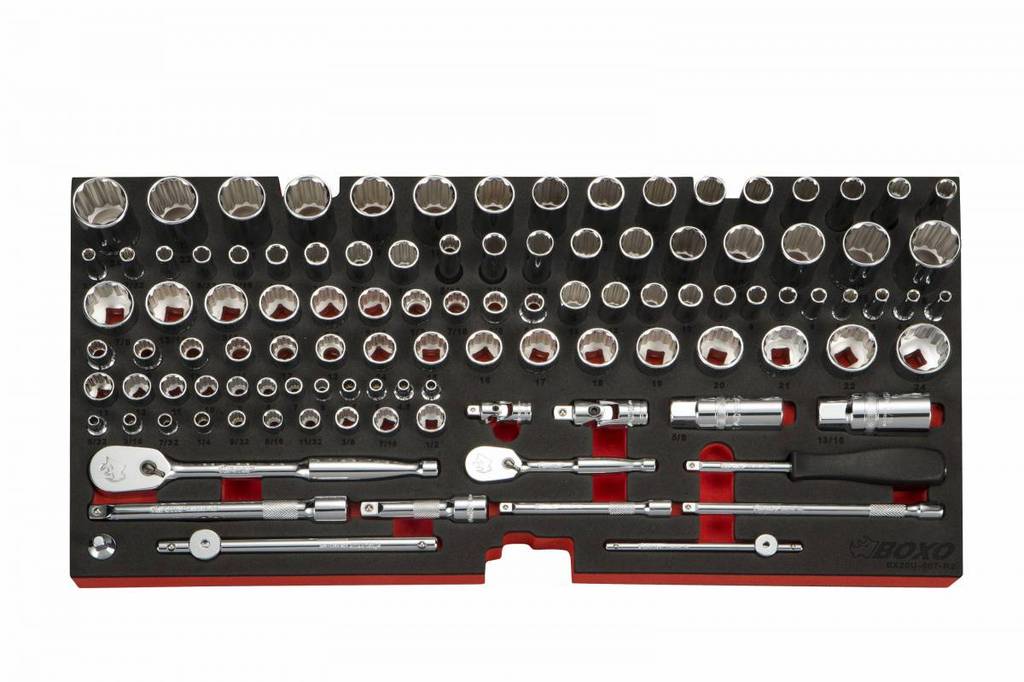 ECC20301-003R2SBK1The 185-piece combo tool set with metric and SAE hand tools in a convenient 3-drawer hand carry tool box is the perfect solution for all your projects. All BOXOusa tools are professional grade craftsmanship with a mirror chrome finish to protect against corrosion and cleans up easily.
