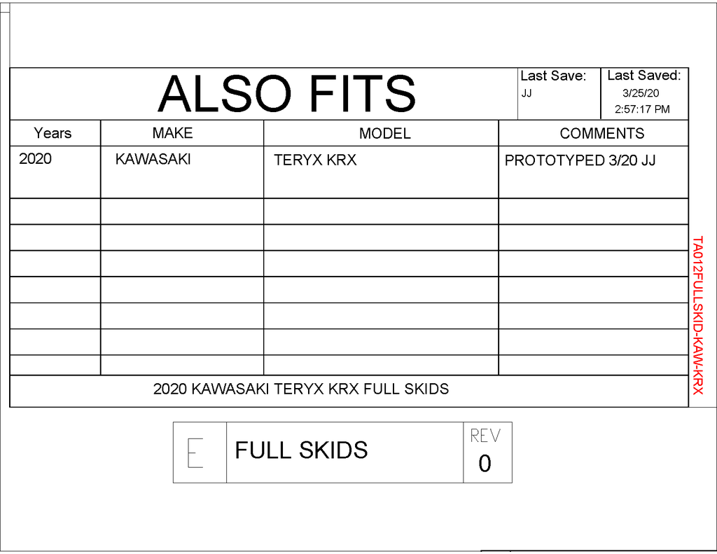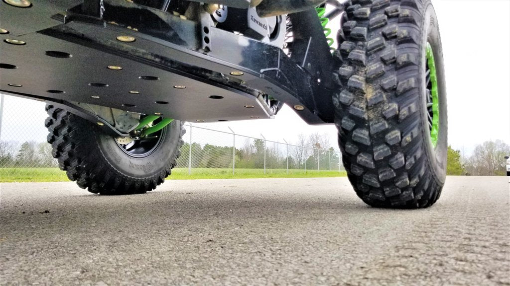 TA012FULLSKID-KAW-KRX-BK + colorGet the best in under vehicle protection with Trail Armor's full skid plate set for the 2020 - 2022 Kawasaki KRX 1000, KRX 1000 Special Edition, KRX 1000 Trail Edition and KRX 1000 eS. Made from our own custom blend of ultra high molecular weight polymer, these 1/2" plastic skids are lighter than most traditional metal/aluminum skid plates and because they have no "impact memory", they absorb shocks to the bottom of your vehicle without the dents, galling and corrosion of metal/aluminum skids. Trail Armor was the first in the industry to design skids with the formed front leading edges featured on our skid plates. These leading edges protect vulnerable frame edges and wheel wells from blunt edge impacts and act as a starting edge to slide over obstacles without the resistance and drag of metal skid plates. Additionally, these Trail Armor skids for the Teryx KRX are designed with extended side skid plates that help protect the vulnerable side panels of your vehicle. Compare Trail Armor's skid set coverage with other skid manufacturer's like items - side skid plates are either sold separately or the bottom skid coverage ends at the factory mounting holes for OEM skids, leaving this part of your vehicle completely unprotected. Trail Armor's skid plates come in easy to install panels that cover the full length and breadth of the vehicle, including the front and rear differential. Access holes to service points and oil drains make maintenance a breeze. Strategically placed drain holes allow dirt and debris to wash out - you don't have to remove them to clean out the belly your vehicle. However, if needed, individual panels may be removed to access different areas without removing the entire skid plate. Recessed mounting holes protect fasteners from damaging blows and keeping all bolt heads from protruding the skid's surface. All kits come with corrosion resistant hardware and photo-documented installation instructions. Installation videos, if available, are provided as a YouTube video on our site. Note: Any Trail Armor a-arm guards shown installed on vehicle in pictures are sold separately and are not included as part of this skid plate set. COLORS ARE CONSIDERED A SPECIAL ORDER AND ARE NON-RETURNABLE. THEY ARE NOT PIGMENT MATCHED TO ANY OEM MANUFACTURER'S COLOR SCHEME. PLEASE CONTACT US FOR ANY QUESTIONS ON MATCHING OR BLENDING WITH YOUR VEHICLE'S PLASTIC AND/OR GRAPHICS. See ALSO FITS CHART in gallery for specific year models.
