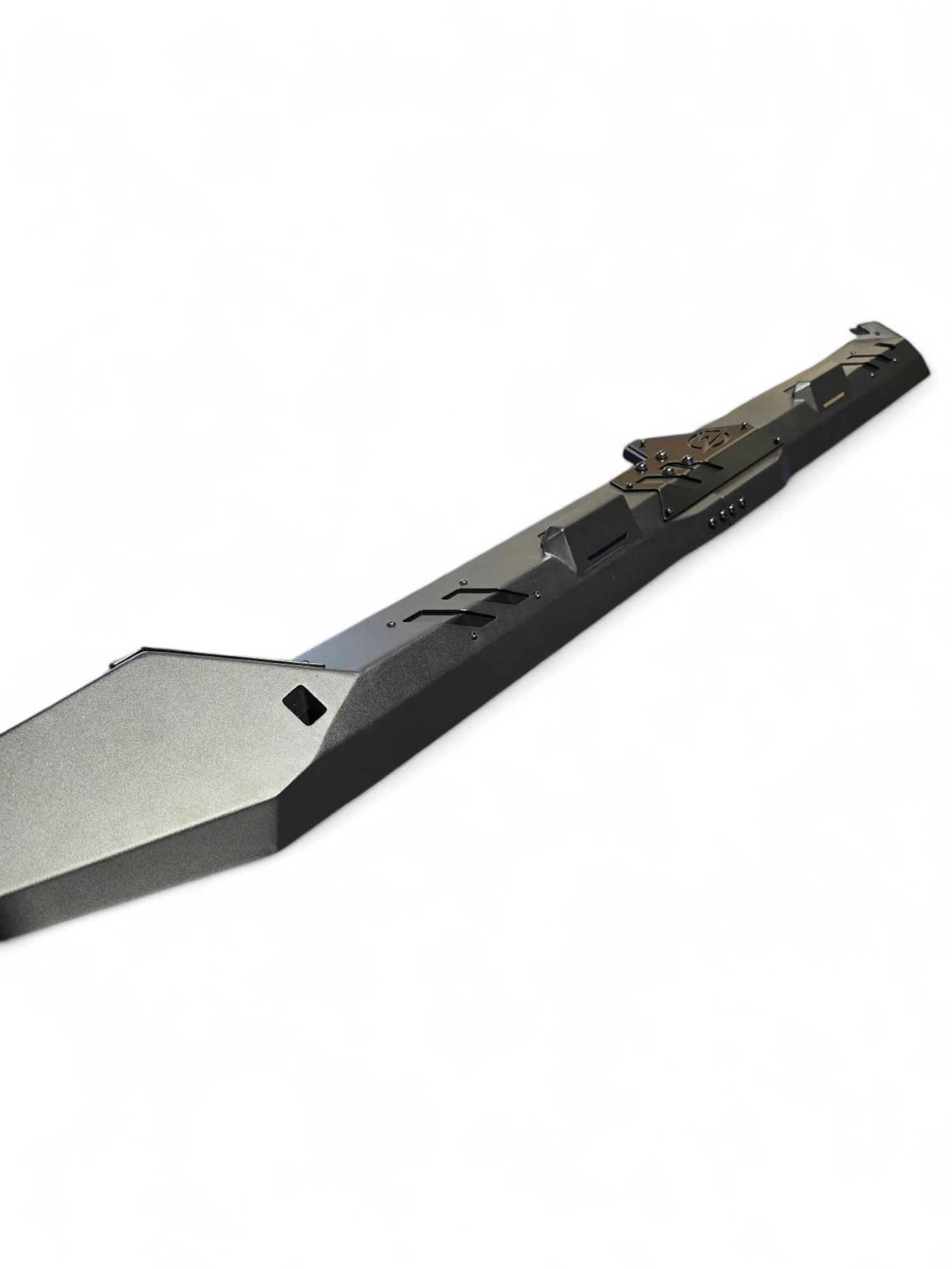 RQRGA0001The Elektric Offroad Designs Volt Series 2024+ Can Am Maverick R Volt Rocker Steps provides added protection to your side by side. Our sliders give added protection to the Mav R's body when squeezing through tight places on your run. Our built-in step function with grip plating allows for traction. These steel sliders are finished in a hammer black powder coat and the aluminum accent plates are finished in a satin black powder coat. Installation features a simple bolt-on process.