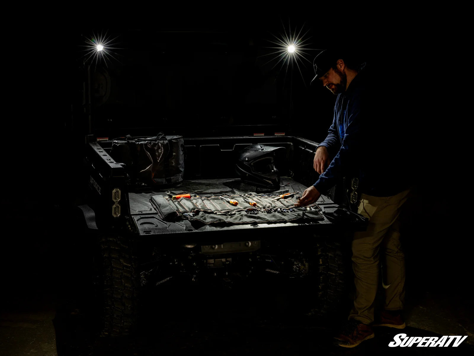 You love your CFMOTO UForce 1000, but let’s be honest—it’s a pain trying to see into the bed at night without constantly fumbling for a flashlight. SuperATV’s Rear-Facing Cube Lights are the game changer you’ve been looking for. With adjustable angled brackets, you can direct the light exactly where you need it. The best part is we offer three different lighting options to fit your needs.