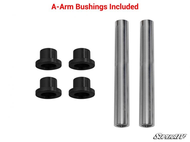 We spared no expense with the design of these A-arms. To start off, we use 1.25” tubing that’s 25% larger than stock. We add a protective powder coat finish for extra strength and longevity. The powder coating, along with the sleek tubed design, also gives your machine a style overhaul. And to save you time and money, we include free UHMW bushings that are virtually frictionless. They’re preinstalled to save you time, and self-lubricating so they get smoother the longer you ride.