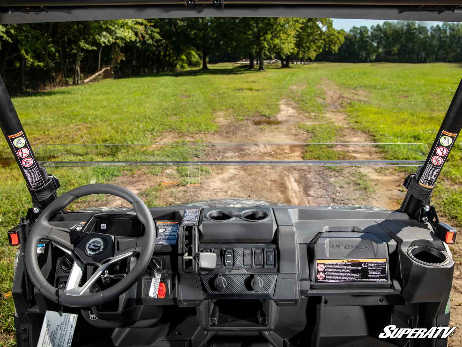 If you love an open-cab feeling but hate being overwhelmed by the wind, install SuperATV's CFMTO UForce 600 Half Windshield. It diverts air so your cab will stay relaxed and comfortable without taking away from your view. And it keeps the elements and flying bugs from hitting you in the face. With this half windshield installed, you can stay comfortable while you ride how you want.