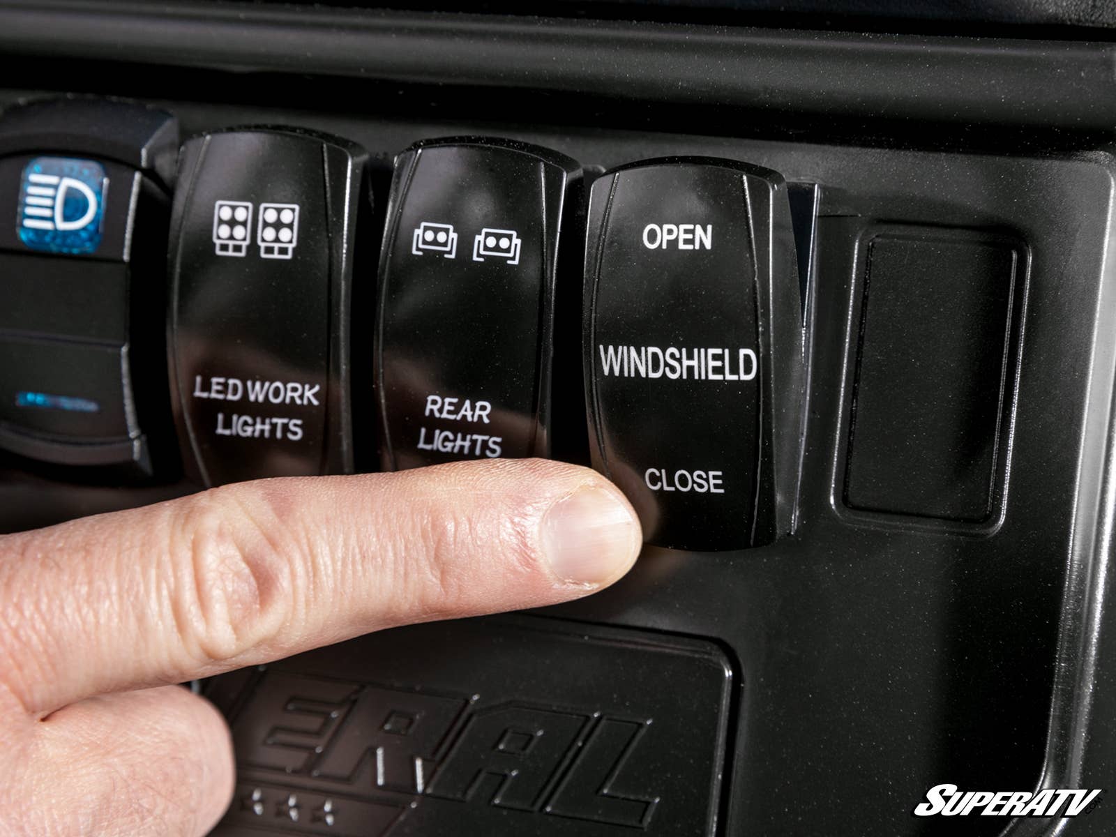 Be ready for any kind of ride with SuperATV’s MaxDrive Power Flip Windshield for the Polaris General XP 1000. You don’t have to check the weather before you hit the trail—just hit the button on the dash to fully open, fully close, or set the windshield to any position in between. It takes zero effort and ensures that you’re always comfortable in your cab.