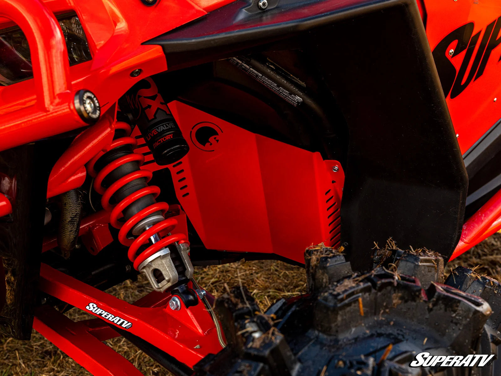 Your Polaris RZR XP Turbo kicks up a whole lot of rock and branches when you’ve got the pedal down on your weekend ride. That crap beats the heck out of your inner front fenders and can even break into your cab to stab you where the sun don’t shine. Stay protected with SuperATV’s Inner Fender Guards. These heavy-duty plates give you the stylish floor protection that keeps you safe.
