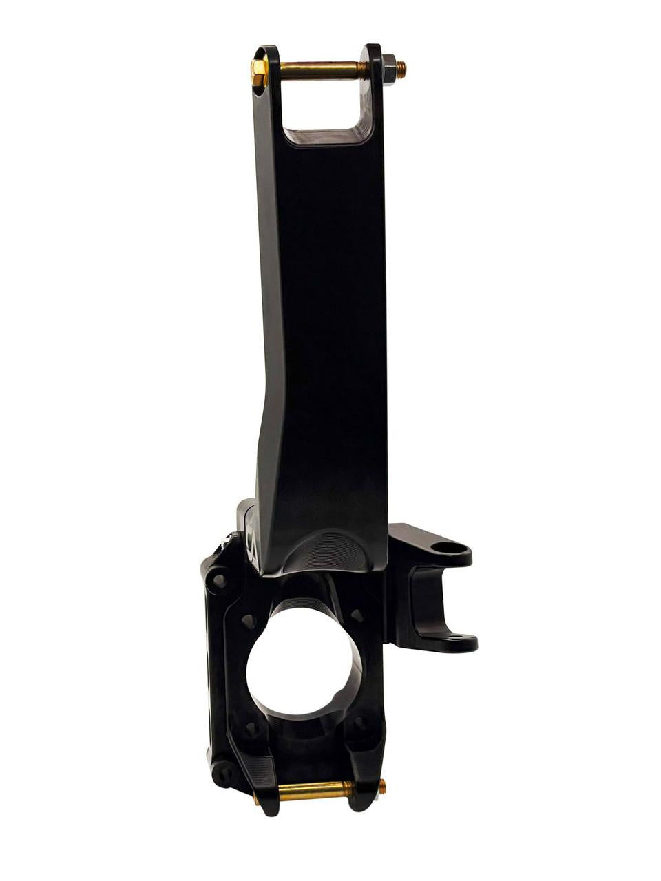 The Maverick R Race Knuckle Kit is engineered for precision and performance, combining innovative design with racing-grade components. Featuring an unequal length control arm setup, it maintains the advantages of a tall knuckle design while eliminating tire size restrictions. This kit significantly improves suspension geometry by reducing bump steer from nearly 1 degree to just 0.2 degrees of total toe change, enhancing handling stability. Additionally, it decreases scrub radius by 12% and track width by 16% compared to factory specs, optimizing cornering response. The uniball joints are vertically oriented for superior strength and durability, aligning with their intended radial load capacity rather than the less effective horizontal positioning. This thoughtful engineering ensures maximum longevity and performance on the track and trail alike.