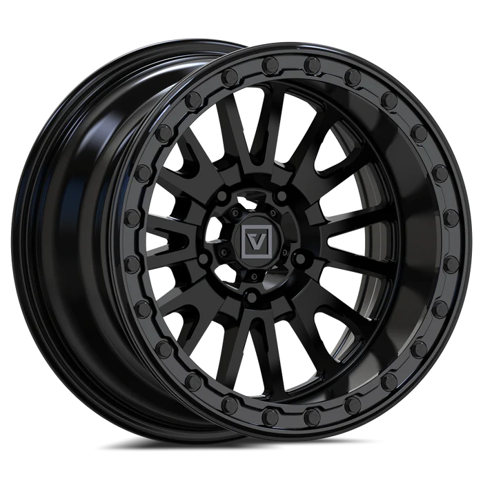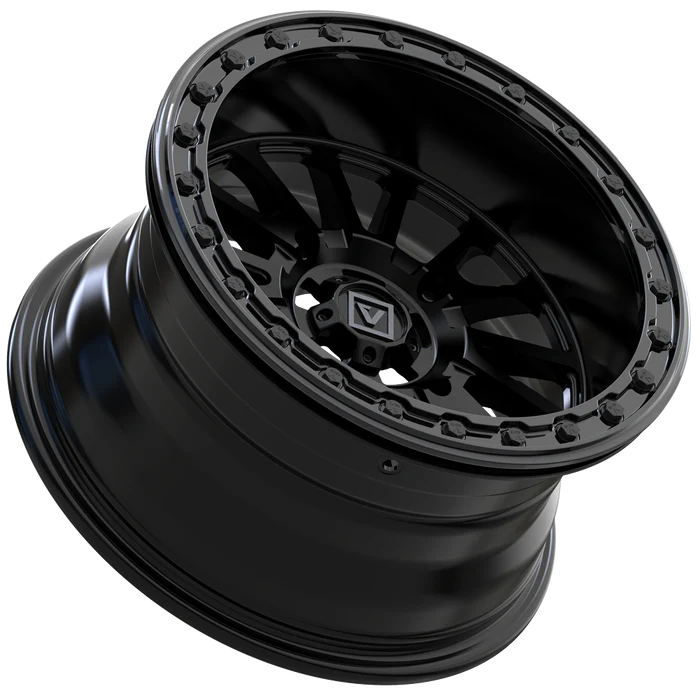 The Valor Offroad V16 Beadlock UTV Wheel is manufactured using flow-forming technology and A356 aluminum with T6 heat treatment for a super-strong wheel and is engineered to exceed SAE 2530 safety specifications—Bolt-on center cap with embossed logo. The billet 6061 aluminum UTV beadlock ring of the V16 Beadlock UTV Wheel protects and performs on any terrain or trail.